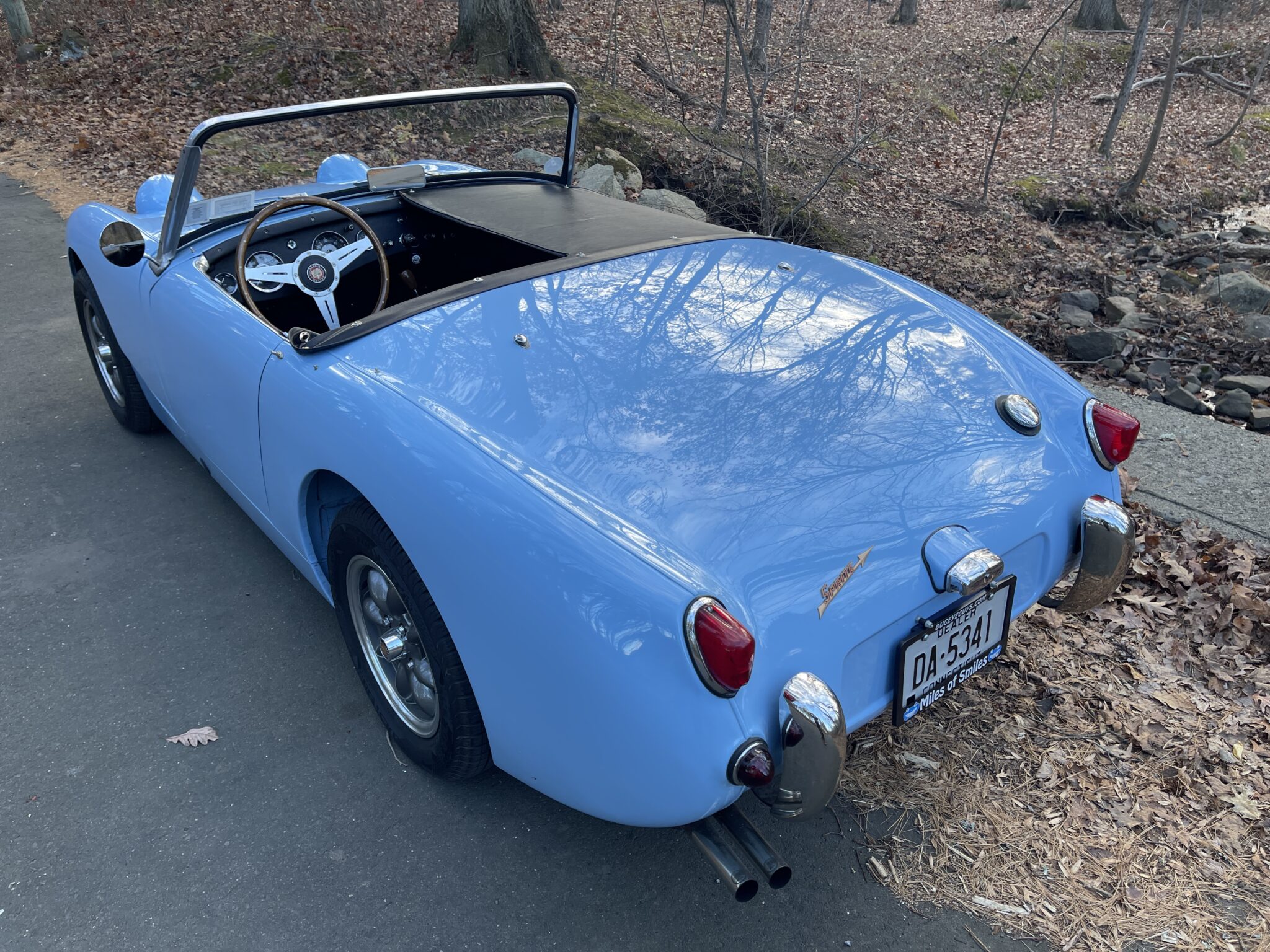 This 1960 Bugeye (titled as a 1961) called “Briggs” was built late in the production run, near the end of Frogeye production. AN5L 45243 had a completely rebuilt 1098 engine and rebuilt rib case transmission installed in 2020, with few miles added since. The car runs and drives nicely, as you can see in the driving video posted below.