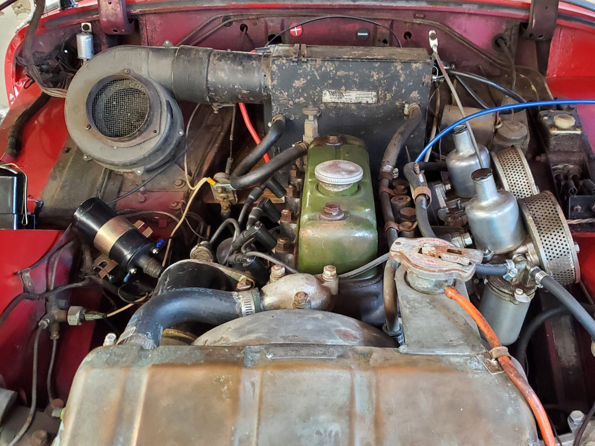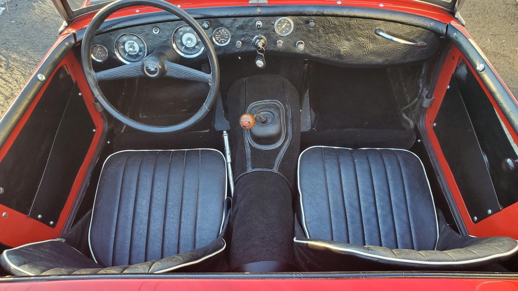 Before Sharpie first departed our shop to head to New Jersey, it underwent over $15,000 in upgrades to take the car to the next level. Included in this package was upgrading the original 948 engine with a 1098 head for improved performance (they look exactly the same from the outside), aluminum radiator, new water hoses, new fuel tank, fuel line kit, solid state fuel pump, double roller timing chain upgrade, harmonic balancer, spin-on oil filter kit, new head gasket, water pump, generator/alternator with dummy regulator, air horn, electronic ignition, new HS2 carburetors with K&N air filters, new stem-to-stern stock exhaust with a stainless steel header, new rear leaf springs, and so much more!