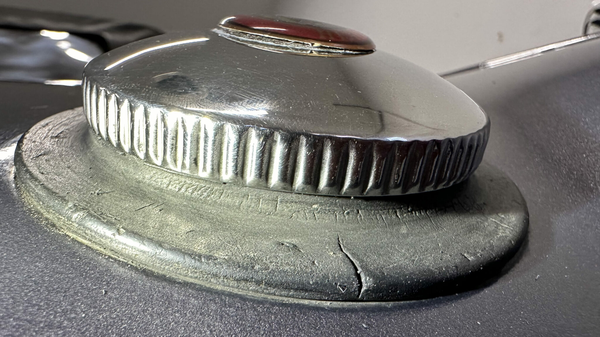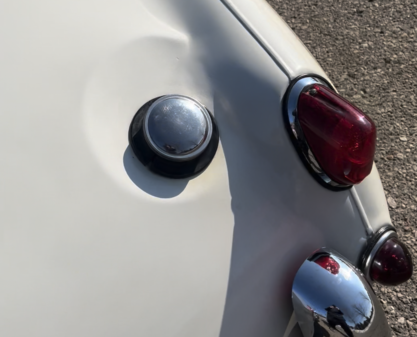 The fuel line could use an upgrade, we’d like to clean that up. The car once had fender wing mirrors and these have been removed. It’s up to the new owner on this one… we can easily put mirrors back in the holes, which are now covered with white tape. Or, the holes can be filled and the nose repainted, totally up to the new owner! I would budget roughly $3000 to have us upgrade all these opportunities for improvement before we send the car to your door.