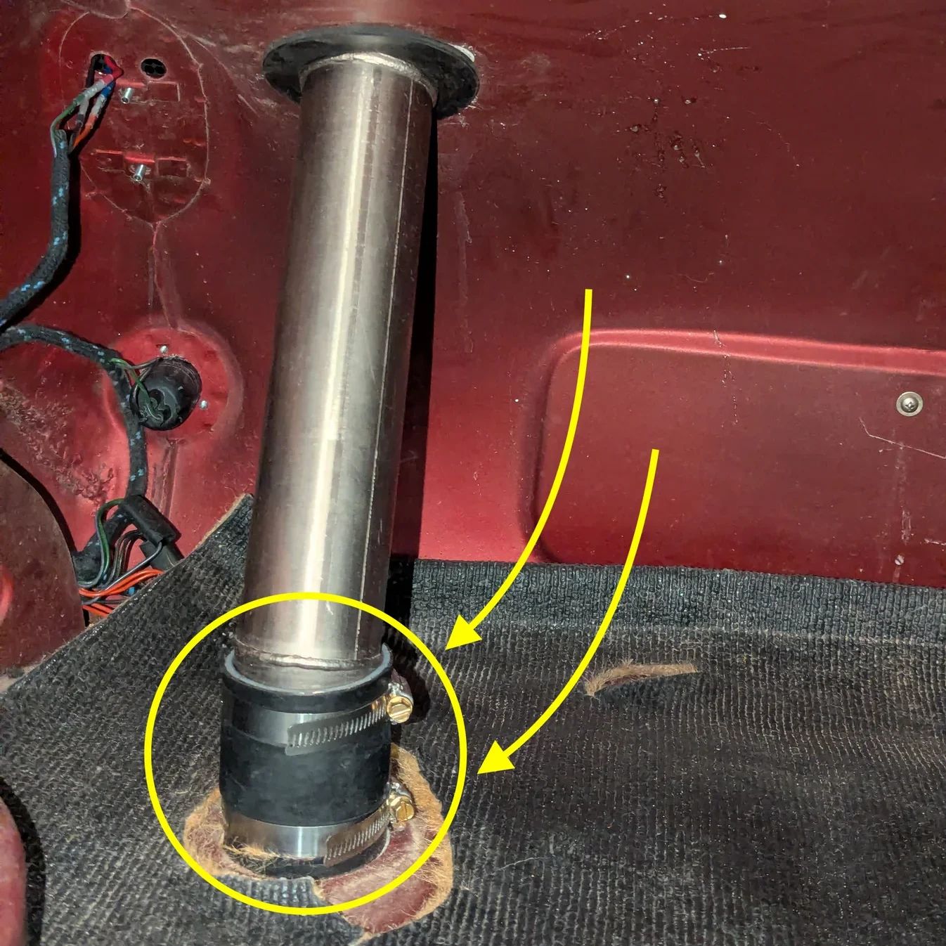 There are a few maintenance opportunities that we can address for the new owner… the water temp gauge and speedometer are not working. We can fix both. Also, the fuel sender seems to be leaking given the fuel tracks on the outside of the trunk floor. This just means it’s time to drop the tank and reseal the sender with a new gasket.