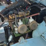 In 2019, we refreshed the mechanicals to put this great car back on the road. We rebuilt all the hydraulics-new slave, master and rear wheel cylinders- and also the original carburetors-the correct H1 carbs are working great and the engine runs strong. The car recently got a new aluminum radiator for improved cooling. By the way, this appears to be a factory gold seal rebuilt 948 engine, a nice novelty.